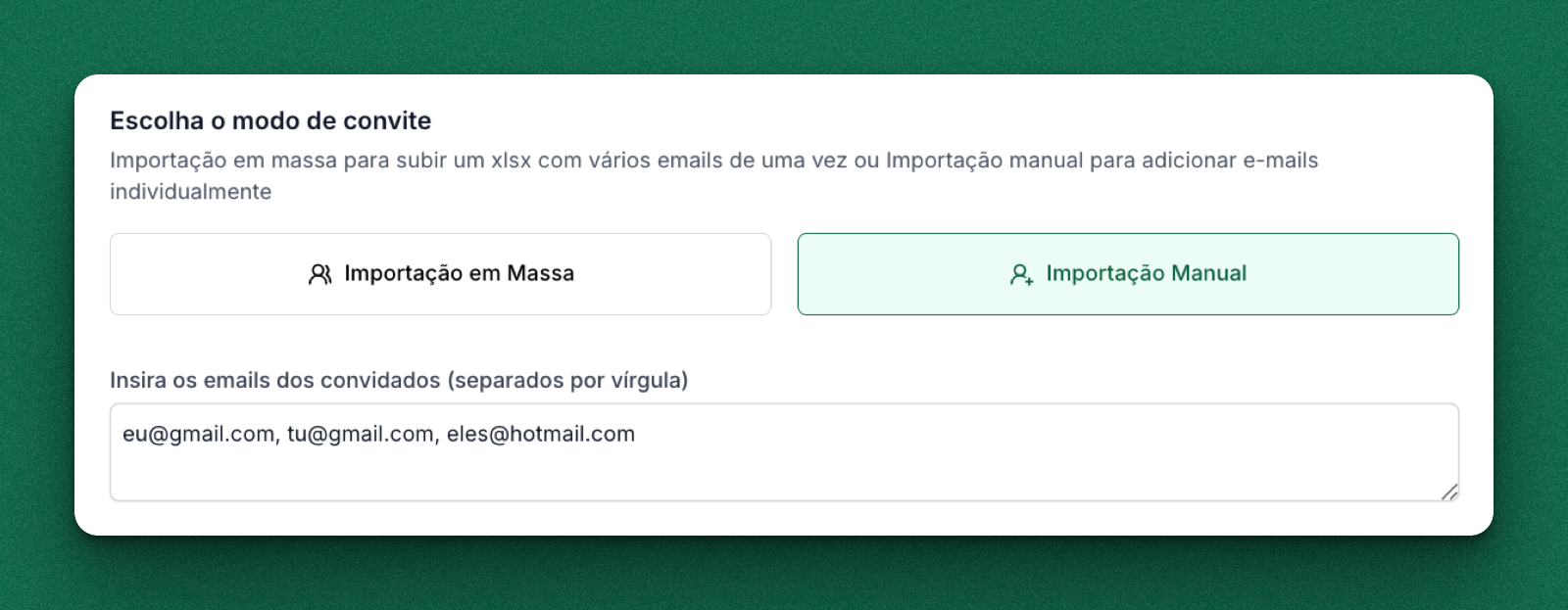 - ✍️ Importação manual: Mais rápida para adicionar algumas pessoas