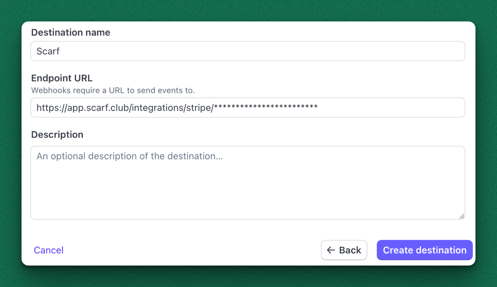 - Endpoint URL: Cole o link que você copiou da Scarf no Passo 1
