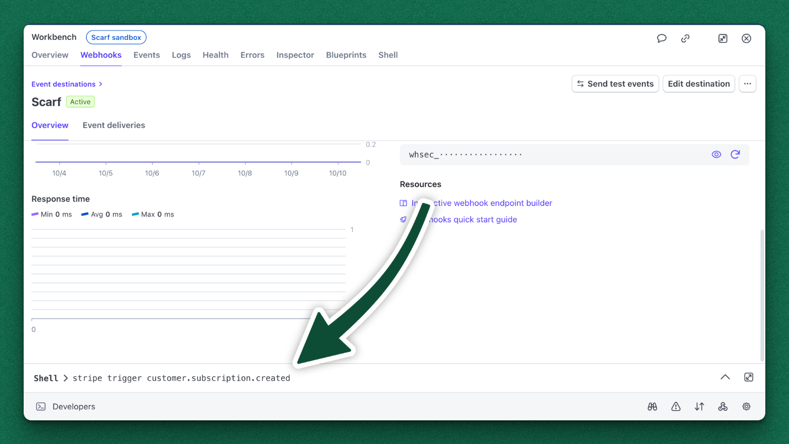 - Na barra lateral esquerda, clique em “Developers” > “Webook”